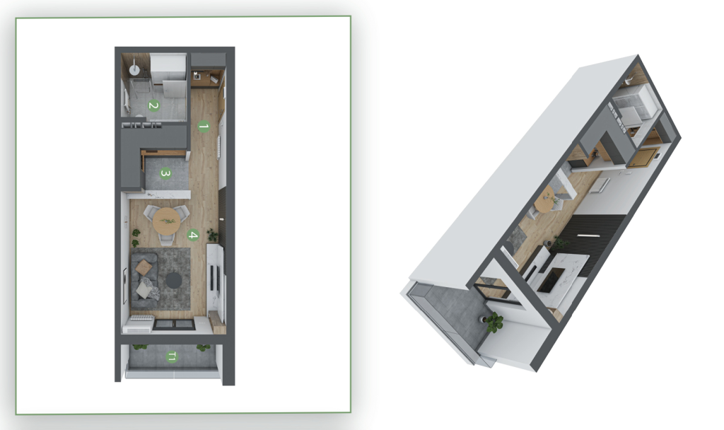 Garsonjere pažljivo osmišljene za maksimalnu funkcionalnost i udobnost. Savršene za studente, pojedince ili kao investicija – kompaktne, praktične i lako održive.