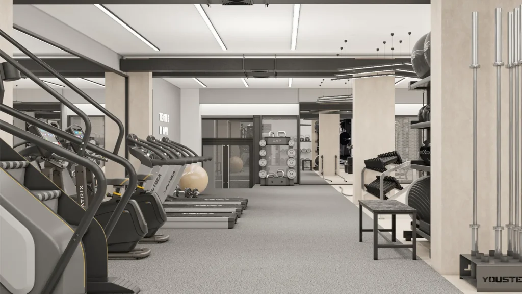 U okviru kompleksa nalazi se moderno opremljena teretana, dostupna stanarima tokom celog dana. Sadrži kardio sprave, slobodne tegove i multifunkcionalne trenažere za kompletnu fizičku pripremu.
